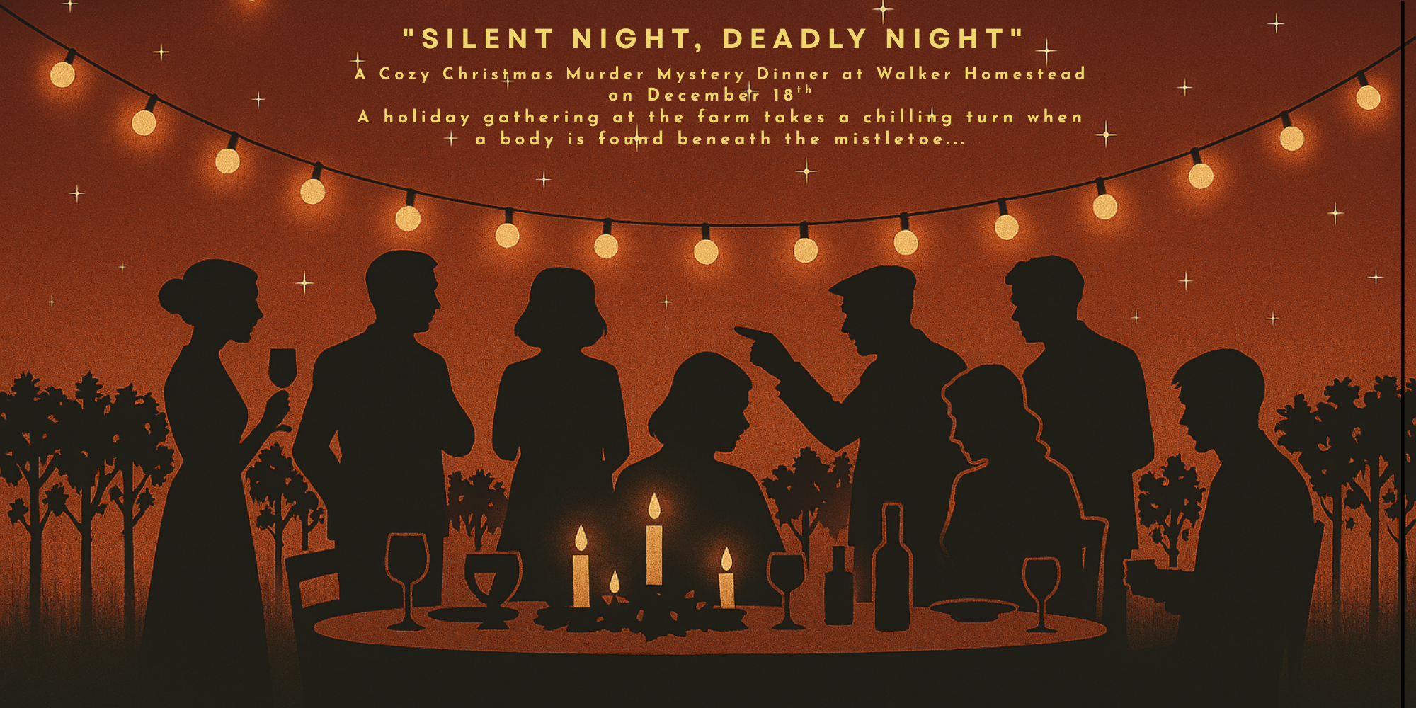 It’s Christmas Eve at Walker Homestead. Snow blankets the vineyard, wassail warms the kitchen, and a small circle of family, friends, and curious newcomers gathers for a festive farm dinner. But when the farm’s beloved founder is discovered beneath the mistletoe—clutching a torn page from a holiday hymn—the celebration turns chilling. With a storm trapping everyone at the farm, guests soon realize they are snowed in with a killer. Secrets from Christmas past begin to surface, and not everyone is who they claim to be. Can the mystery be solved before the eggnog runs dry?